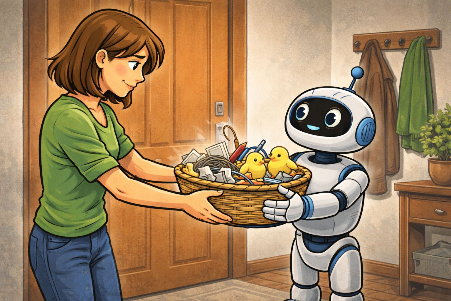 Et inngangsparti hvor en robot hjelper oss med å sortere ut hva som reklame og kan gå i søpla, og hva som er post vi vil ta med oss inn i stua for å handle på.