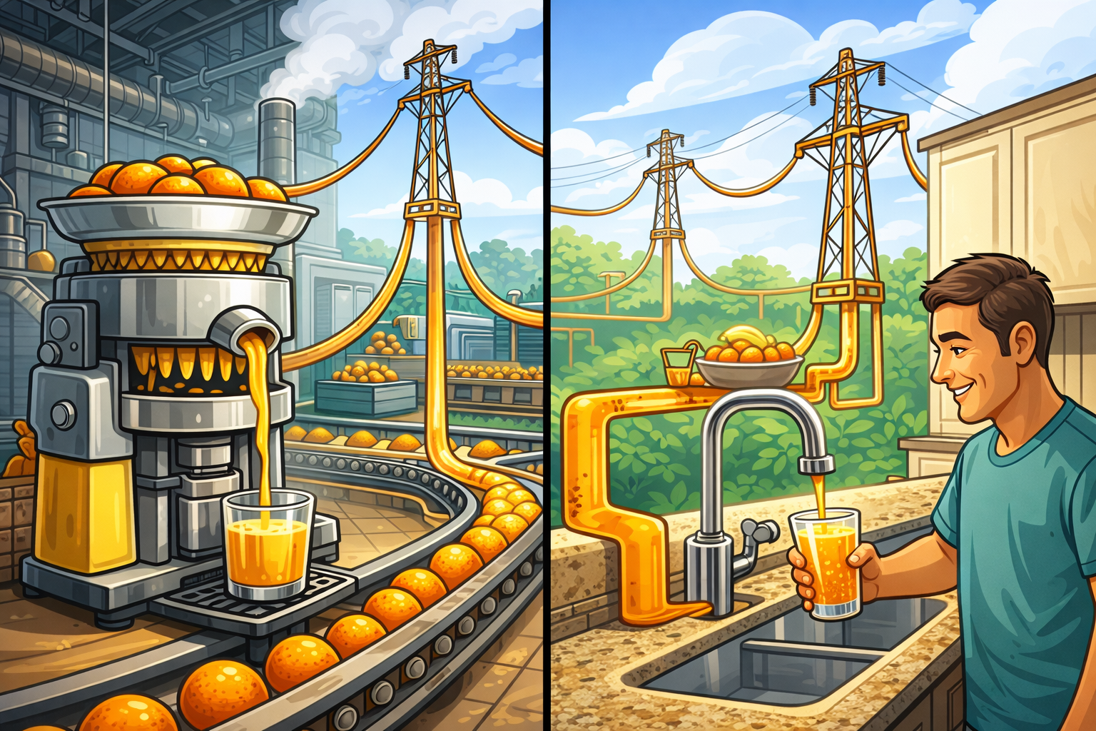 Et slags nettverk mellom juice-presse og juice-nyter.